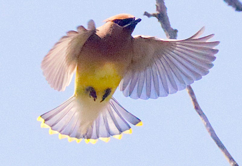 I met Cedar Waxwings the hard way, in the winter of 1990-91, upon return to Spokane after a couple years in South Carolina and Georgia
