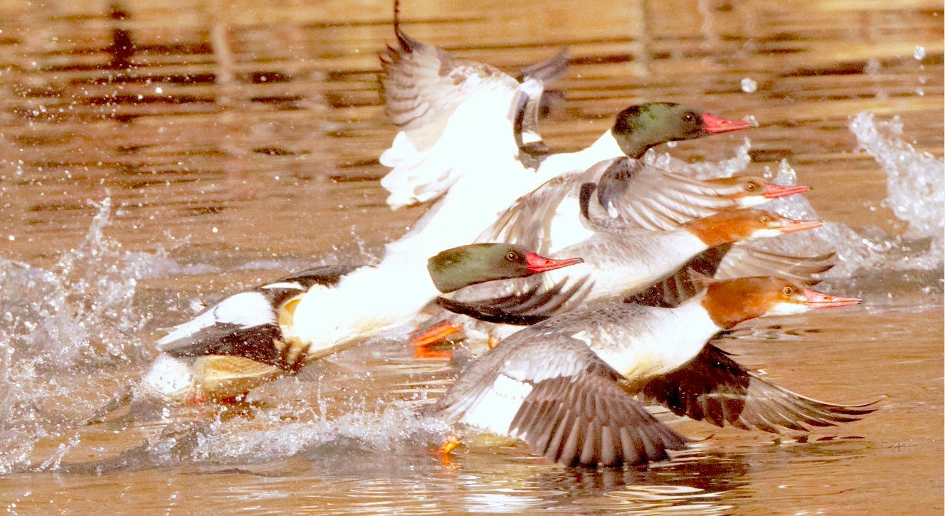 Common mergansers are the largest of North American diving ducks. But it’s their airspeed that can really make your head spin