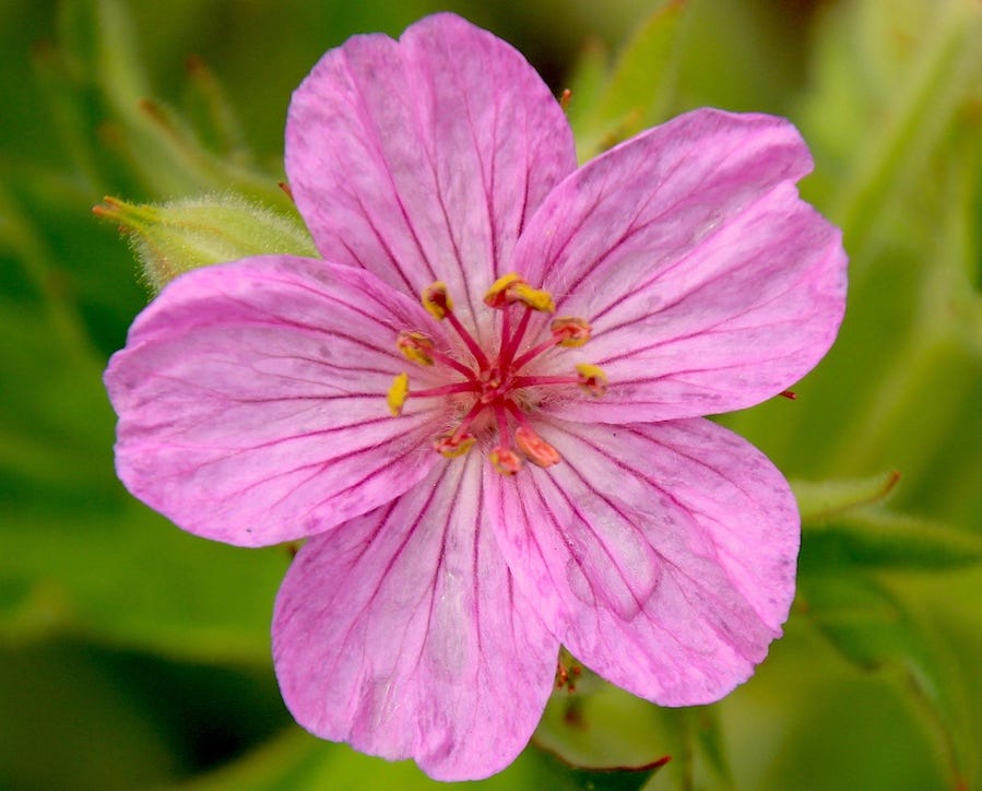 Raindrop on sticky geranium in a meadow bordering Sprague Lake, in Lincoln County