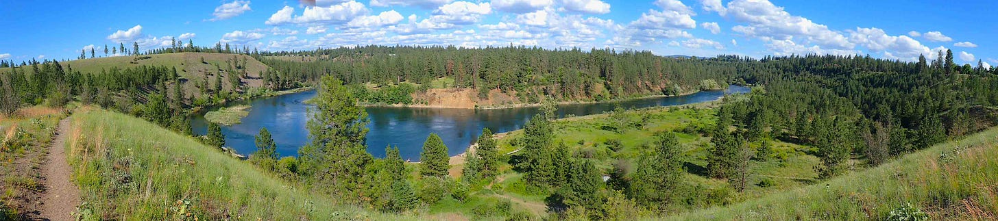 So this is how I get to cool off, with an afternoon commute westward on the Centennial Trail, to “The Big Eddy.” It is an opening in the Spokane River a mile and a half downstream of the T.J. Meenach Bridge where, each year, thousands of runners cross the Spokane River before trudging up “Doomsday Hill.”