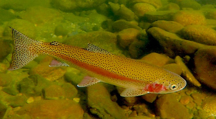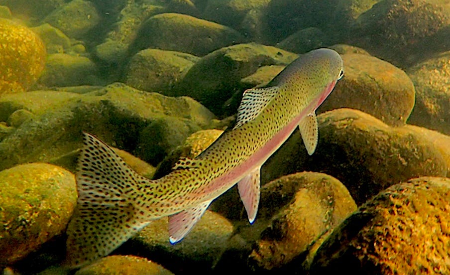 A longer story of how I meet redband trout *Oncorhynchus mykiss gairdnerii), the world’s fastest freshwater fish can be found here, in a cover story for The Inlander that ran last September. The challenge this year was to find a new Tedband companion (or two) who’d let me swim with him/her. And I have found one.