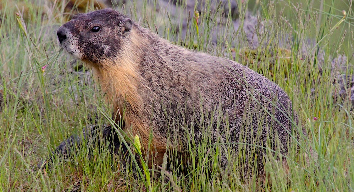 Grazing marmot in a rimrock meadow