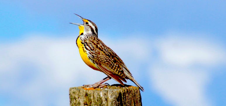 A Western Meadowlark announces from its post